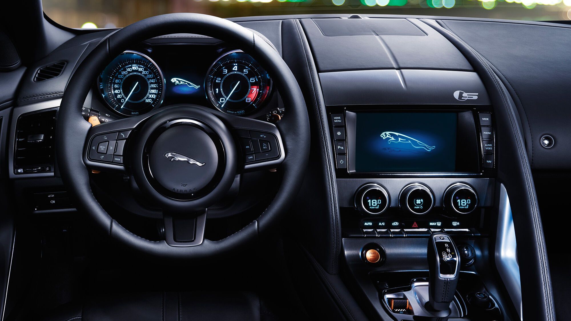 The Jaguar F-Type's multi-function controls operate intuitively. Dials are simple and clear – an important facet for a sports car.